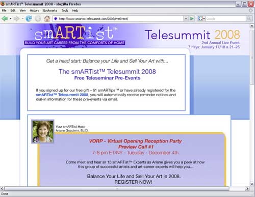 Get started on your New Year's resolutions and join me Tuesday, Jan 8th at 7pm EST for a FREE smARTIST telesummit preview call!